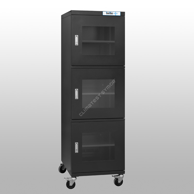 Climatest Symor® Fuktighetskontroll-oppbevaringsskap brukes til å kontrollere fuktighet innenfor 20%RH-60%RH, ethvert fuktighetspunkt i dette området kan stilles inn fritt, fuktighetskontrolllagringsskapet tar i bruk den automatiske avfuktingsteknologien.